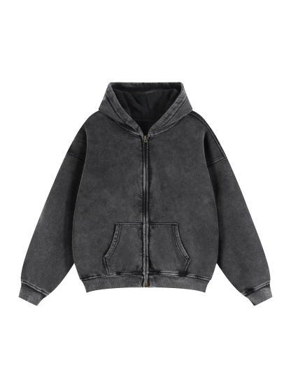 Features:Basics, Casual, Street, Vintage, Daily Casual, Outdoor, School, Office, Cotton Blend, Washed, Zipper, Long Sleeve, Drop Shoulder, Hooded, Regular, Loose, Spring, Autumn, Winter